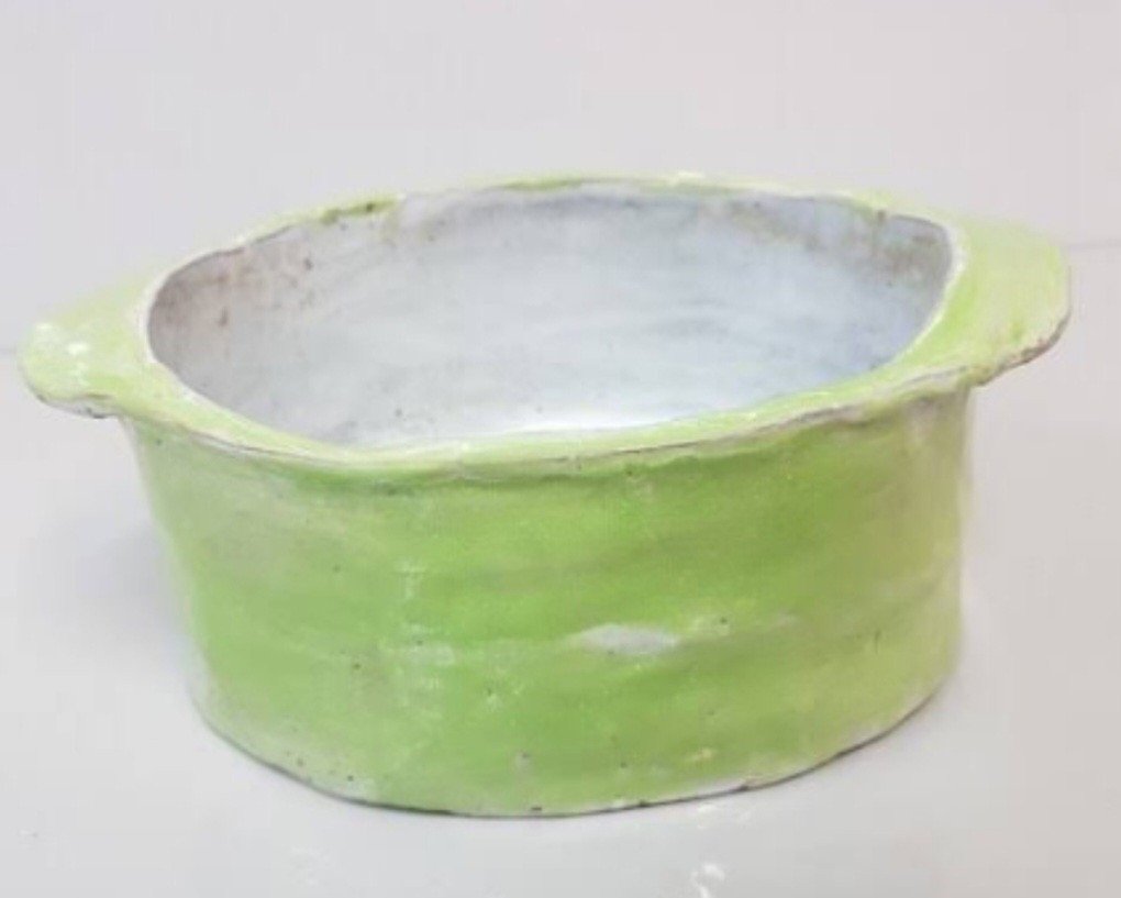 Mit der Wursttechnik baust du die Form auf einer ausgewallten Platte auf. Vielleicht ist sie rund, oval oder gar herzförmig. Du kannst auch kleine Henkel montieren. Auf der Aussenseite kannst du die Form verzieren.